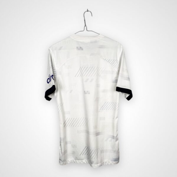 Domowy model Tottenhamu Hotspur FC z sezonu 2023/24, wyprodukowany przez Nike w rozmiarze S, pochodzi z okresu rozpoczęcia nowego etapu w historii klubu pod wodzą Ange’a Postecoglou. Drużyna prezentowała ofensywny styl gry i przez znaczną część rozgrywek Premier League utrzymywała się w czołówce tabeli.