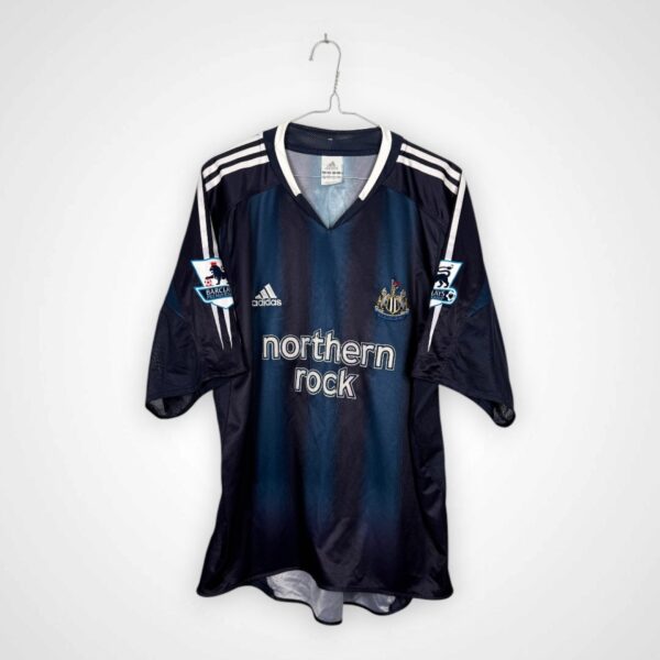 Wyjazdowy model Newcastle United FC z sezonu 2004/05, wyprodukowany przez Adidasa w rozmiarze L, pochodzi z wymagającego okresu dla klubu, który rywalizował w Premier League, jednocześnie próbując utrzymać pozycję w górnej połowie tabeli. Sezon ten zakończył się finalnie czternastym miejscem w tabeli, co było rozczarowaniem względem wcześniejszych ambicji zespołu.