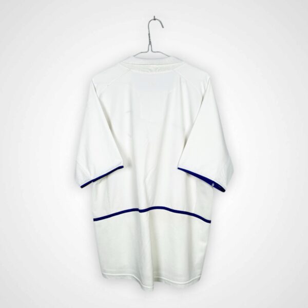 Domowy model Leeds United FC z sezonu 2002/03, wyprodukowany przez Nike w rozmiarze XL, pochodzi z jednego z najbardziej wymagających okresów w historii klubu. Drużyna, która jeszcze niedawno rywalizowała w Lidze Mistrzów, zmagała się z problemami sportowymi i organizacyjnymi, a sezon zakończył się walką o utrzymanie w Premier League.