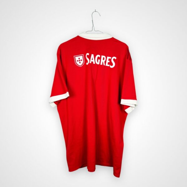 Domowy model SL Benfiki Lizbona z sezonu 2017/18, wyprodukowany przez Adidasa w rozmiarze XXL, pochodzi z okresu walki o utrzymanie dominacji w portugalskiej Primeira Liga. Po czterech kolejnych mistrzostwach kraju drużyna przystępowała do rozgrywek jako główny faworyt ligi, rywalizując jednocześnie w krajowych pucharach oraz w europejskich rozgrywkach.