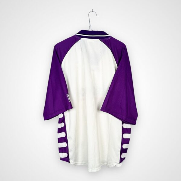 Koszulka została wyprodukowana na białej bazie, którą uzupełniają fioletowe panele boczne, a także fioletowe rękawki i kołnierz typu polo, tworzące charakterystyczną kolorystykę związaną z identyfikacją wizualną SV Wüstenrot Salzburg z przełomu lat dziewięćdziesiątych i dwutysięcznych. Na froncie centralne miejsce zajmuje nadruk sponsora Wüstenrot, natomiast herb klubu oraz logo Fili rozmieszczono klasycznie na klatce piersiowej.