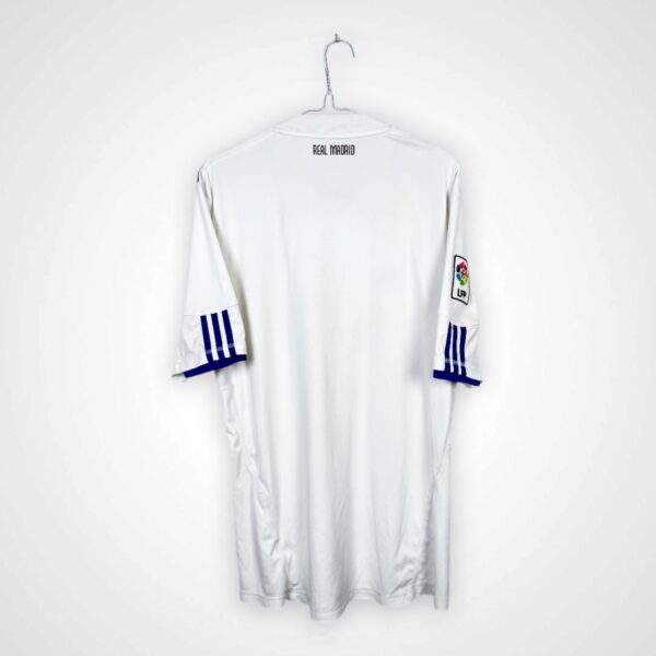 Domowy model Realu Madryt z sezonu 2010/11, wyprodukowany przez Adidasa w rozmiarze M, pochodzi z pierwszego roku pracy José Mourinho, który rozpoczął budowę zespołu zdolnego do rywalizacji z najlepszymi drużynami w Europie. Był to sezon intensywnej walki z FC Barceloną, zakończony zdobyciem Pucharu Króla po pamiętnym finale.