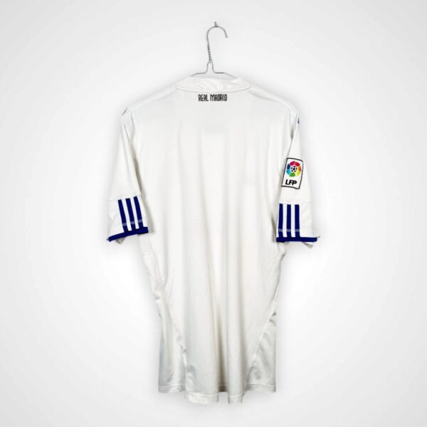Domowy model Realu Madryt z sezonu 2010/11, wyprodukowany przez Adidasa w rozmiarze L, pochodzi z pierwszego roku pracy José Mourinho, który rozpoczął budowę zespołu zdolnego do rywalizacji z najlepszymi drużynami w Europie. Był to sezon intensywnej walki z FC Barceloną, zakończony zdobyciem Pucharu Króla po pamiętnym finale.