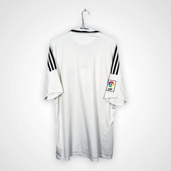 Domowy model Realu Madryt z sezonu 2008/09, wyprodukowany przez Adidasa w rozmiarze XL, pochodzi z przełomowego okresu w historii klubu, będącego ostatnim sezonem przed rozpoczęciem nowej ery związanej z przyjściem Cristiano Ronaldo. Zespół rywalizował w La Liga oraz Lidze Mistrzów, a mimo wysokich oczekiwań nie zdołał sięgnąć po najważniejsze trofea.