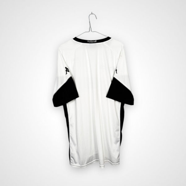 Model przygotowany przez Lotto dla Borussii Mönchengladbach na sezon 2007/08, utrzymany w eleganckiej, klasycznej stylistyce, charakterystycznej dla projektów włoskiego producenta z tamtych lat. Prezentowany egzemplarz w rozmiarze L posiada nadruk Saschy Röslera na plecach, co czyni go szczególnie interesującym dla kolekcjonerów związanych z niemieckim futbolem.