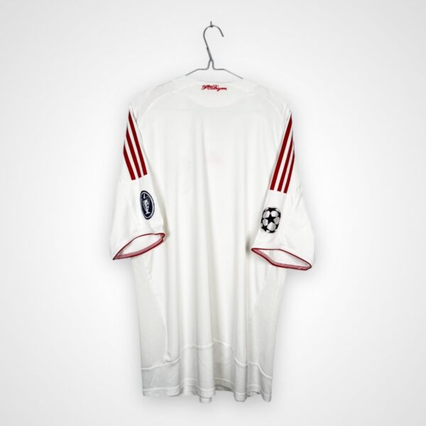 Wyjazdowy model Bayernu Monachium z sezonu 2009/10, wyprodukowany przez Adidasa w rozmiarze M, pochodzi z jednego z najbardziej udanych sezonów w historii klubu. Drużyna prowadzona przez Louisa van Gaala sięgnęła po mistrzostwo Niemiec i krajowy puchar, a także dotarła do finału Ligi Mistrzów.