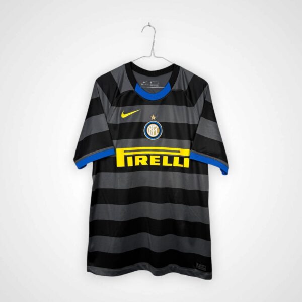 Trzeci komplet Interu Mediolan z sezonu 2020/21, wyprodukowany przez Nike w rozmiarze L, pochodzi z wyjątkowego okresu zakończonego zdobyciem mistrzostwa Włoch i przerwaniem wieloletniej dominacji Juventusu. Zespół prowadzony przez Antonio Conte prezentował bardzo skuteczny i fizyczny styl gry, oparty na szybkim przejściu do ataku i solidnej organizacji w defensywie.