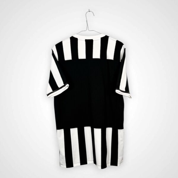 Koszulka została wyprodukowana w klasycznym układzie biało-czarnych pionowych pasów, będących znakiem rozpoznawczym Juventusu FC. Projekt zachowuje tradycyjny charakter, a na froncie centralnie umieszczony został nadruk sponsora Jeep, który wyraźnie kontrastuje z klubowymi barwami i stanowi główny element kompozycji.