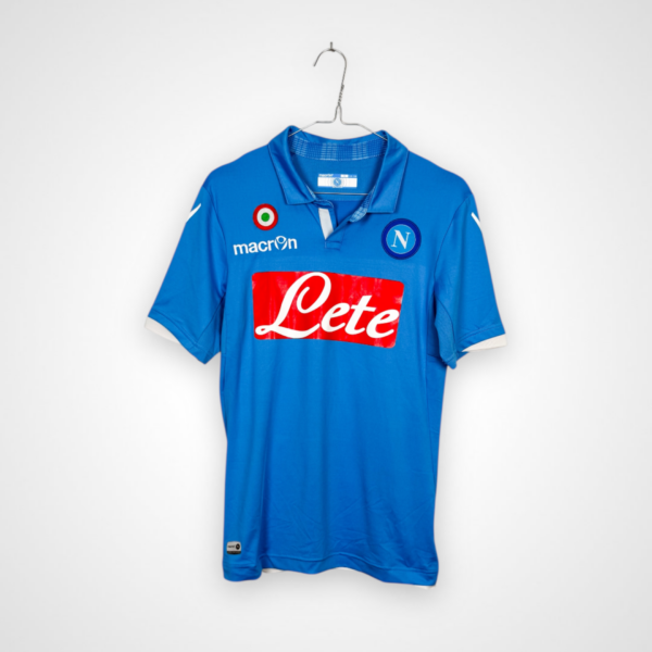 Model przygotowany przez Macron na sezon 2014/15 dla SSC Napoli, w rozmiarze S, prezentuje klasyczną dla klubu błękitną kolorystykę połączoną z eleganckim wykończeniem. Koszulka utrzymana jest w stylistyce typowej dla połowy lat 2010, a jej najbardziej charakterystycznym elementem jest kołnierzyk typu polo, który nadaje projektowi bardziej tradycyjnego i wyrafinowanego charakteru.