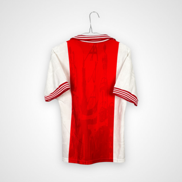 Domowy model AFC Ajax z sezonu 1996/97, wyprodukowany przez Umbro w rozmiarze młodzieżowym na wzrost 158 cm, pochodzi z okresu, w którym klub z Amsterdamu pozostawał jednym z najważniejszych w europejskim futbolu. Był to czas odbudowy krajowej dominacji po finale Ligi Mistrzów w 1996 roku i kontynuacji filozofii opartej na wychowankach oraz ofensywnym stylu gry.