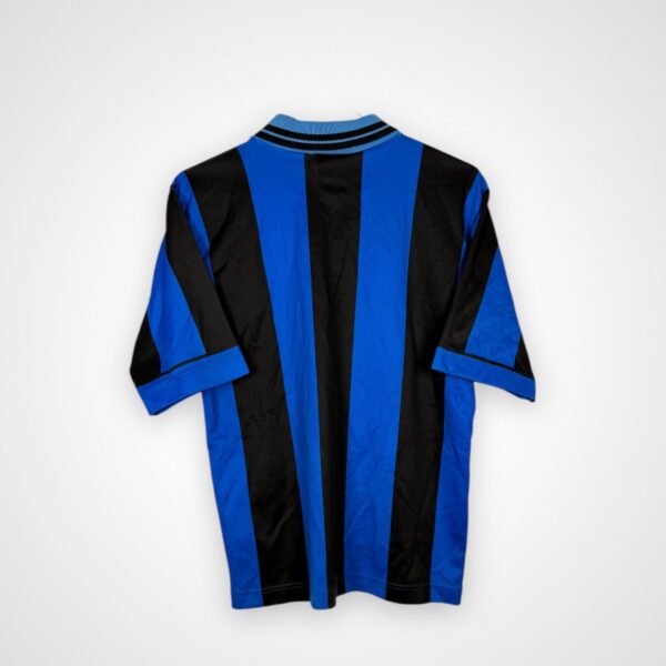 Domowy model Interu Mediolan z sezonu 1995/96, wyprodukowany przez Umbro w rozmiarze młodzieżowym na 158 cm wzrostu, to klasyka włoskiej Serie A połowy lat 90. Był to okres rywalizacji w krajowych rozgrywkach oraz europejskich pucharach, w którym klub z Mediolanu pozostawał jedną z najbardziej rozpoznawalnych marek włoskiego futbolu.