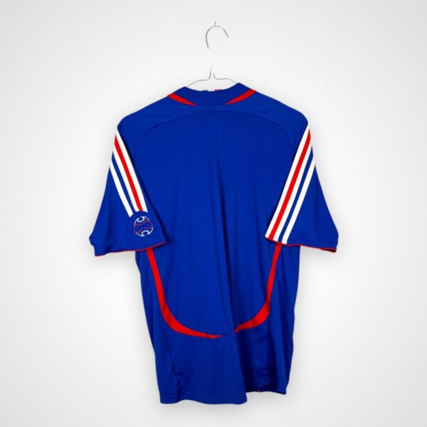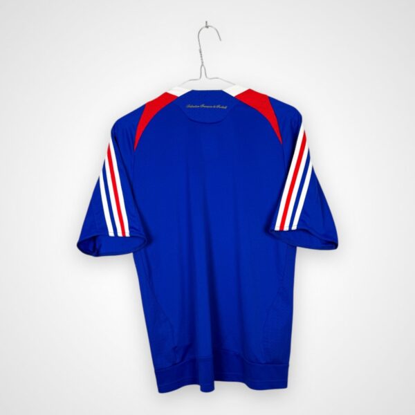 Domowy model reprezentacji Francji z lat 2006/08, wyprodukowany przez Adidasa w rozmiarze młodzieżowym na 170 cm wzrostu, pochodzi z okresu jednego z najbardziej pamiętnych turniejów w historii francuskiej kadry. Reprezentacja Francji występowała w tym stroju podczas Mistrzostw Świata 2006 w Niemczech, gdzie mimo przeciętnej fazy grupowej zespół dotarł aż do finału turnieju.