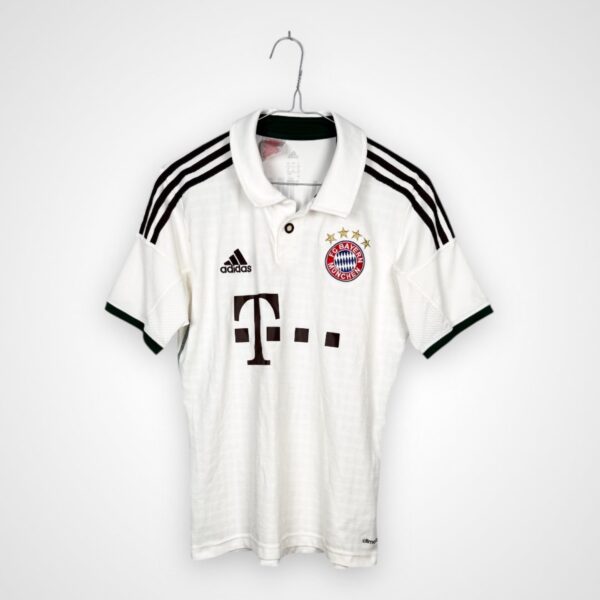 Wyjazdowy model Bayernu Monachium z sezonu 2013/14, wyprodukowany przez Adidasa w młodzieżowym rozmiarze na wzrost 164 cm, pochodzi z jednego z najbardziej dominujących okresów w historii klubu. Drużyna prowadzona przez Pepa Guardiolę zdominowała rozgrywki Bundesligi, zdobywając mistrzostwo Niemiec z dużą przewagą nad rywalami i kontynuując pasmo sukcesów rozpoczęte w poprzednim sezonie.