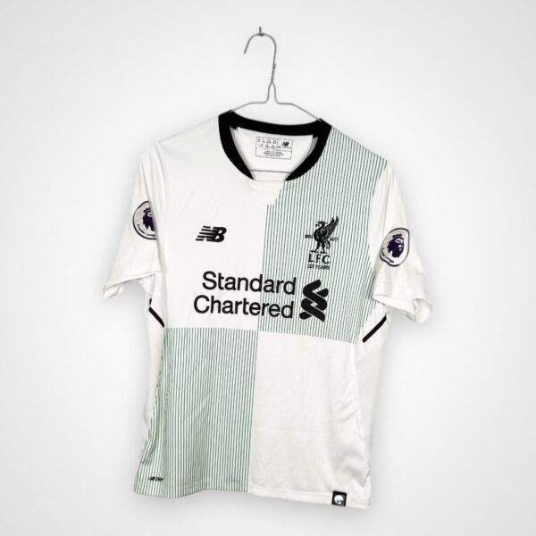 Oryginalna wyjazdowa koszulka piłkarska Liverpoolu FC z sezonu 2017/18 produkcji New Balance z nadrukiem Adama Lallany.