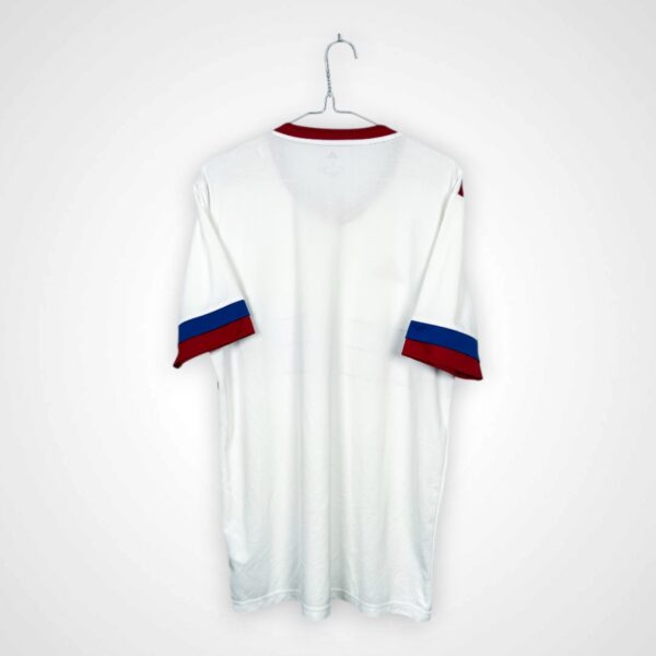 Wyjazdowy model FC Bayernu Monachium z sezonu 2015/16, wyprodukowany przez Adidasa w rozmiarze M, pochodzi z okresu dominacji klubu na krajowym podwórku pod wodzą Pepa Guardioli. Drużyna sięgnęła po kolejne mistrzostwo Niemiec, prezentując wysoki poziom organizacji gry i kontrolując przebieg spotkań w Bundeslidze.