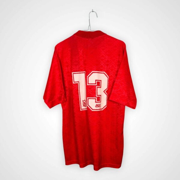 Ten sezon był dla reprezentacji Polski okresem trudnych eliminacji i prób odbudowy pozycji na arenie międzynarodowej po latach niepowodzeń. Właśnie z tamtego czasu pochodzi ta oryginalna meczowa koszulka w czerwonym kolorze, przygotowana przez firmę Puma. Egzemplarz posiada numer 6 na plecach, z którym występował m.in. Radosław Michalski – jeden z kluczowych polskich pomocników połowy lat 90.