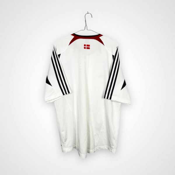 Egzemplarz przygotowany przez Adidasa dla reprezentacji Danii na lata 2004–2006, w rozmiarze XL, to model treningowy utrzymany w charakterystycznej dla duńskiej kadry estetyce początku lat 2000. Projekt bazuje na białej kolorystyce, uzupełnionej mocnymi akcentami w barwach narodowych, co nadaje koszulce sportowego, a jednocześnie eleganckiego charakteru.