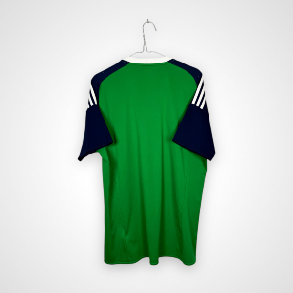 Projekt przygotowany przez Adidasa dla reprezentacji Irlandii Północnej na lata 2016–18, w rozmiarze L, cechuje się prostotą i funkcjonalnością typową dla turniejowych kompletów narodowych. Stonowana forma oraz czytelna kolorystyka podkreślają reprezentacyjny charakter koszulki, zachowując spójność z tradycyjnym wizerunkiem drużyny.