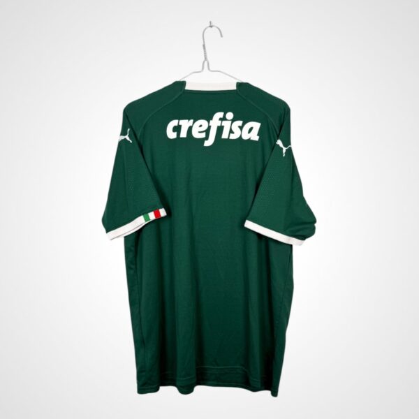 Koszulka została wyprodukowana na ciemnozielonej bazie, jednoznacznie kojarzonej z tożsamością Palmeiras. Projekt uzupełniają białe wykończenia kołnierza oraz rękawków, które wprowadzają klasyczny kontrast i podkreślają elegancki charakter domowego kompletu. Na froncie centralnie umieszczono nadruk sponsora Crefisa, jednego z kluczowych partnerów klubu w tym okresie, ściśle związanego z jego sportowymi sukcesami końcówki drugiej dekady XXI wieku.