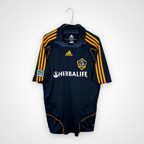 Oryginalna wyjazdowa koszulka piłkarska Los Angeles Galaxy z lat 2007/08 produkcji Adidasa z nadrukiem Davida Beckhama.